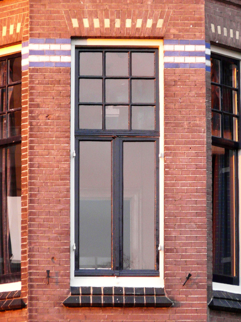 Venster met beneden 2 enkelruits draairamen en bovenraam met 3 x 3 ruiten