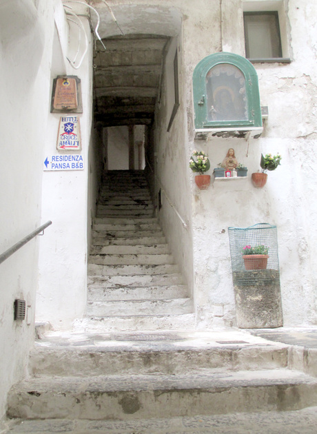 Amalfi (I) - Via di San Nicole de Grecia 8. De toegangstrap, naar boven gezien.