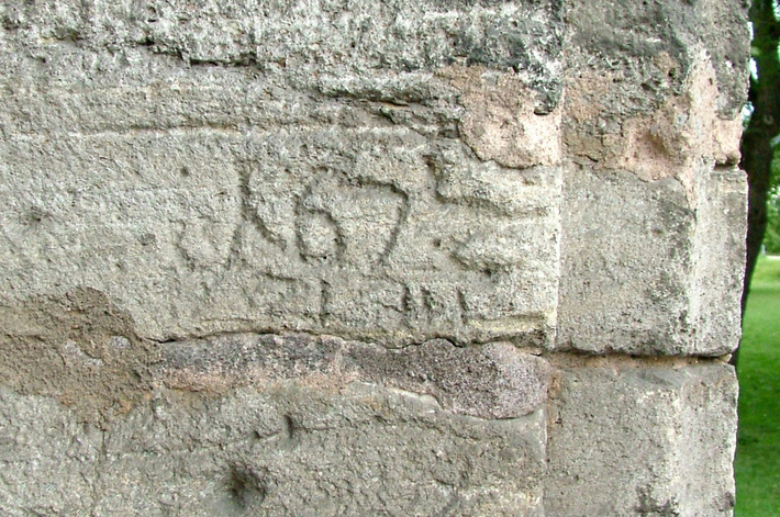 Rothenburg ob der Tauber (D) - stadsmuur - Rödertor, detail van de toren: het jaartal 1672