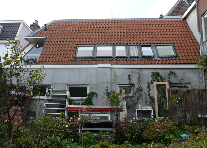 , het achterrein (waar voorheen een slop was) naar het westen gezien
