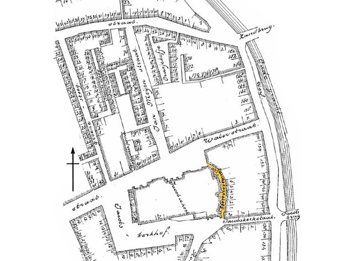 De steeg is hier ingekleurd