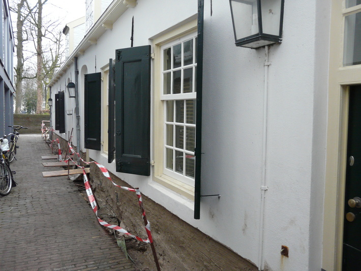 (nu Bruntensteeg 1): deel van de ingang en het venster. Links volgt