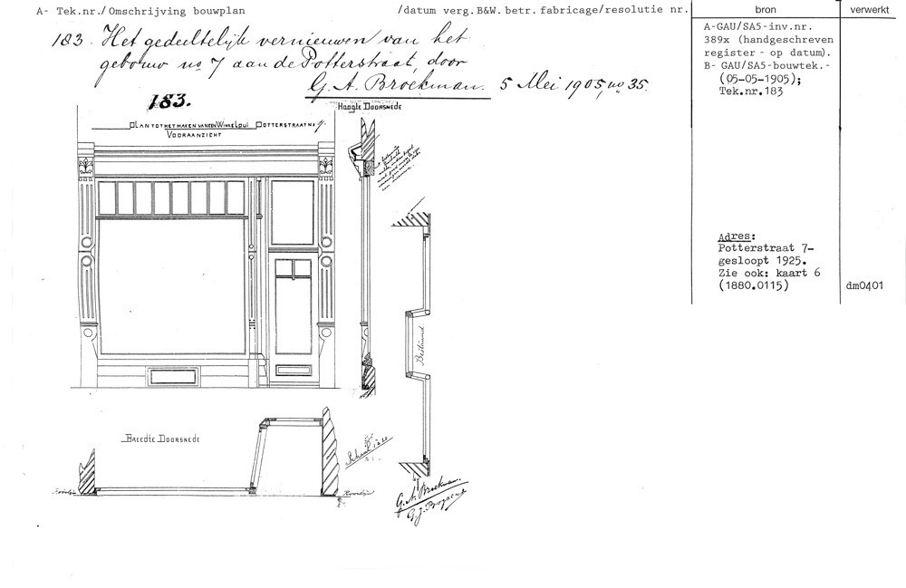 Utrecht - Potterstraat 7 - gesloopt 1925