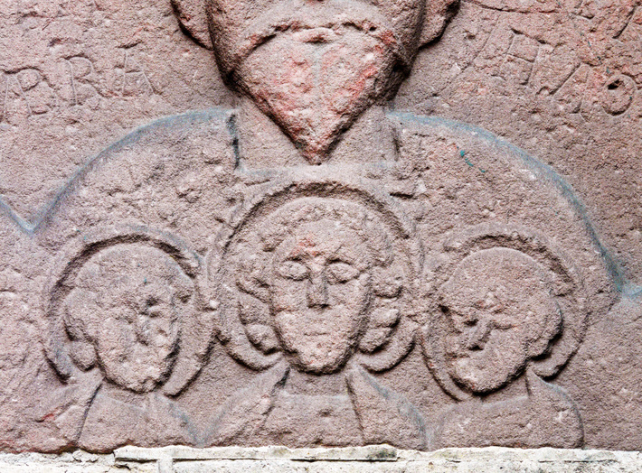 , detail van herplaatst timpaan met 'Abrahams schoot'