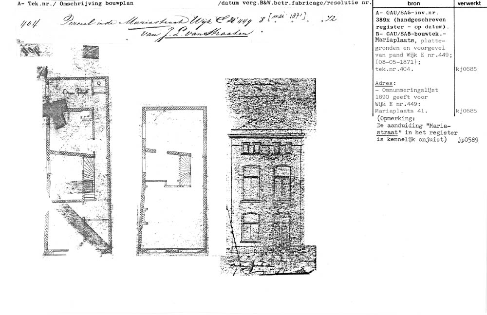 Utrecht - Mariaplaats 41 - gesloopt 1895 - ouder adres