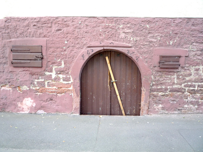 , ingang met stichtingsjaar en initialen, linker deel van het jaartal