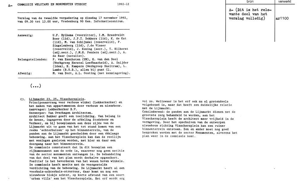 Utrecht - Visschersplein - bouwplan 1992a