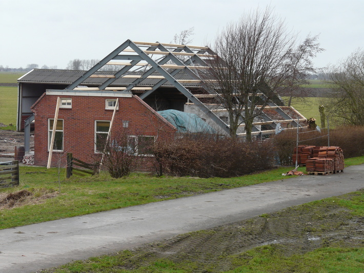 Nieuwbouw achter oude gevel. bij Wittewierum