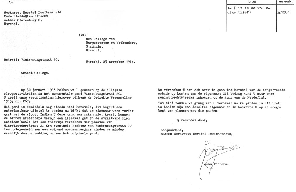Utrecht - Vinkenburgstraat 20 (gesloopt 1985)