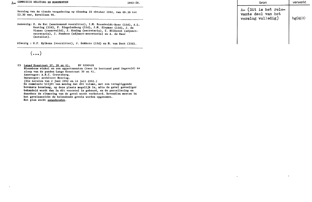 Utrecht - Lange Koestraat 37 e.v. - bouwplan 1992