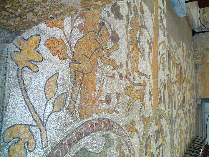 , mozaïekvloer (1163-1165), middenschip, detail rij ten oosten van de medaillons, detail linker helft