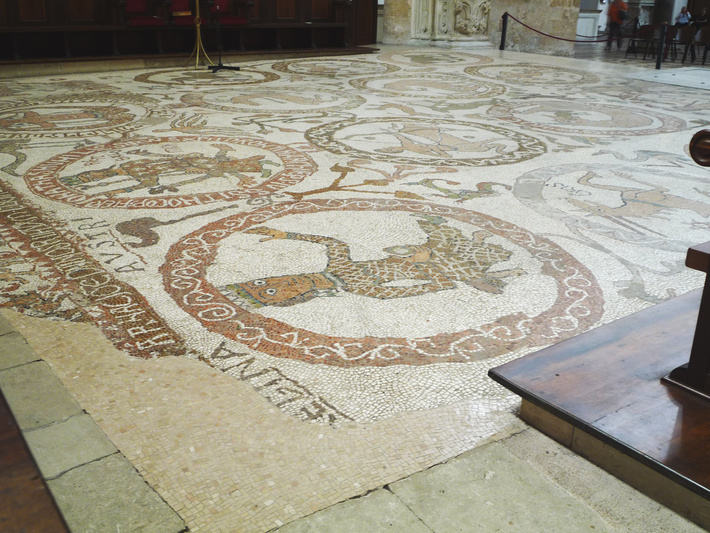 , mozaïekvloer (1163-1165), koor, de medaillons van links uit gezien. Voor gekantelde versie van deze foto: zie volgende pagina