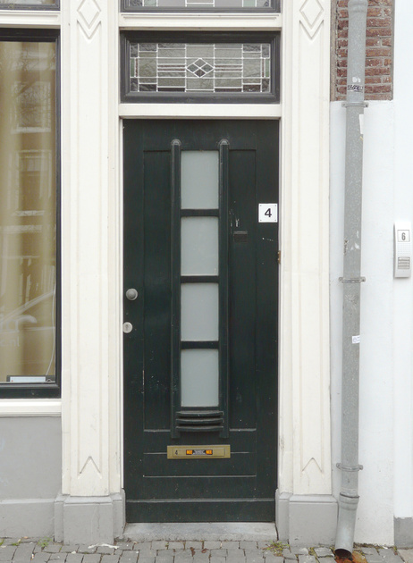 , rechter toegang tot de bovenwoningen met toegevoegd bovenlicht, na verlaging deuropening