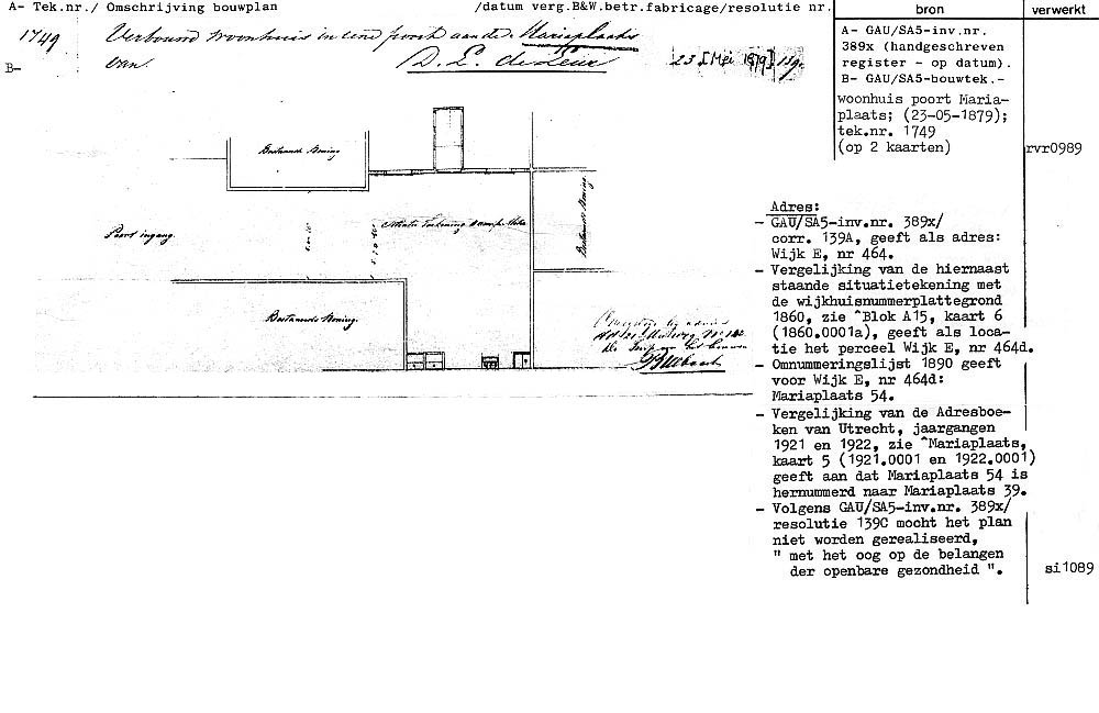 Utrecht - Mariaplaats 39 - gesloopt 1940 (oud adres)