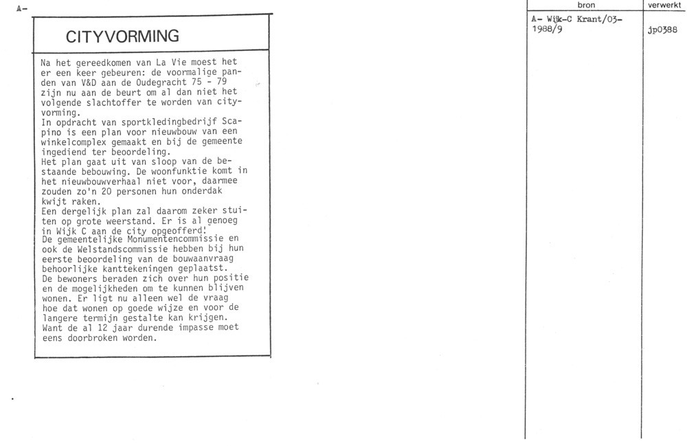 Utrecht - Oudegracht 75 e.v. - bouwplan 1987