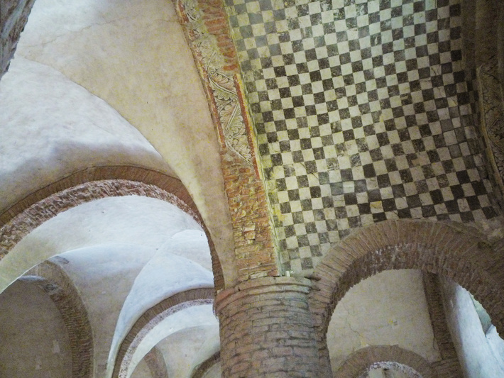 , gewelven van de narthex, links graatgewelven over de middenbeuk, rechts een dwarsgeplaatst tongewelf over de zijbeuk
