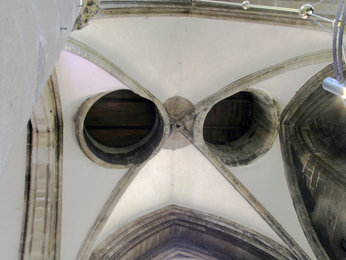 Metz (F) - cathédrale Saint-Étienne, klokgaten van de rechtertoren, te zien in de rechter zijbeuk