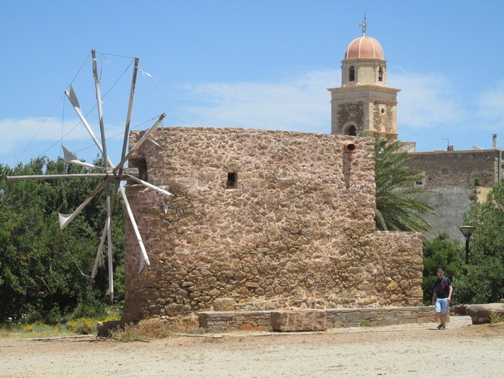 Molen voor vaste windrichting in het klooster Toplou (Kreta, GR).