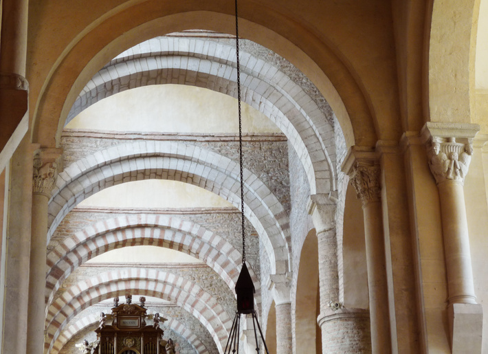 , dwarsgeplaatste tongewelven van het middenschip, vanuit de viering gezien