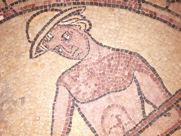 , vloermozaïek in kooromgang (XII A). Detail van het maaien als werk van de maand juni