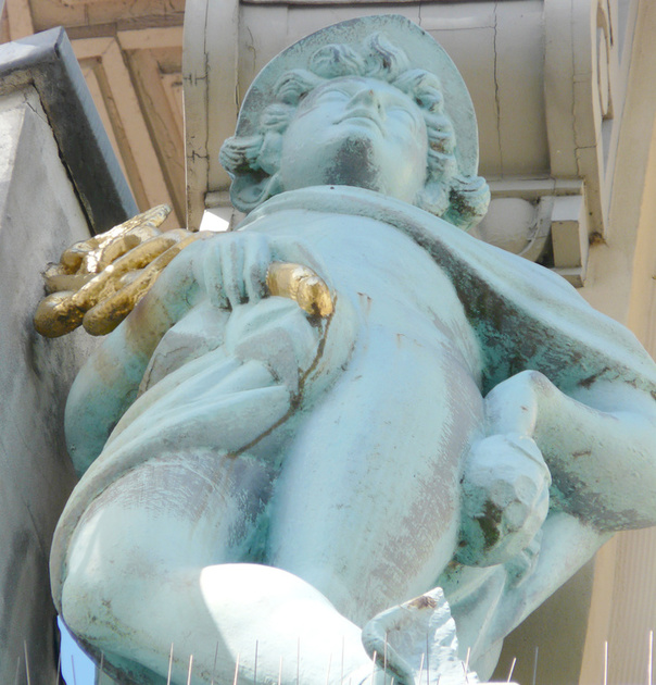 , linker hoekrisaliet, 2e verdieping, linker beeld: de Koophandel, gepersonifieerd door de god van de handel, Hermes (Mercurius) met zijn caduceus (toverstaf).