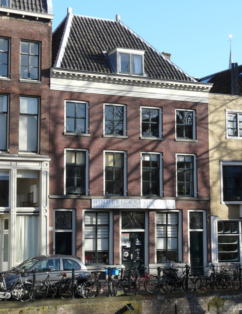 . Naast de winkelpui bevindt zich rechts de toegang tot de bovenwoning, links de toegang tot de bovenwoning van het linker buurpand (