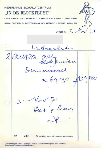 Rekening voor twee alt-blokfluiten