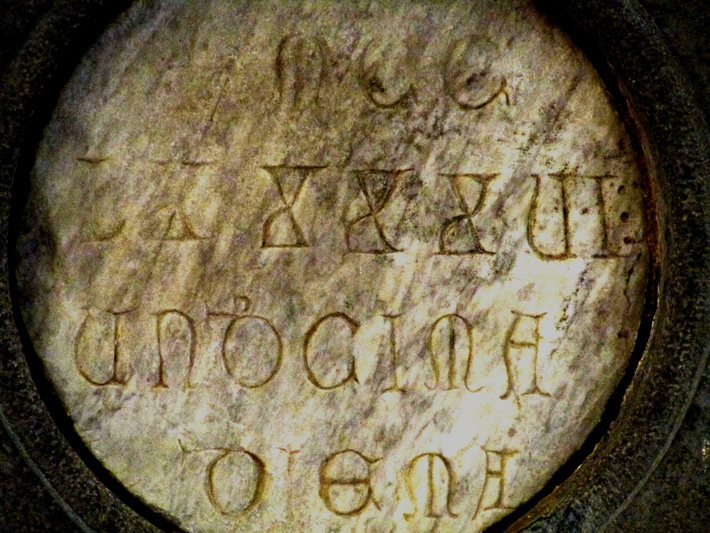 , inscriptie op één van de cirkels van de quincunx, waarin het jaartal