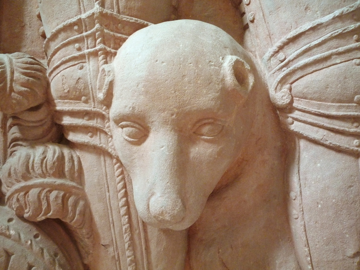 . Grafsteen van Freiherr Johann Friedrich von Wolfskehl zu Vetberg, 1609. Detail met dier.