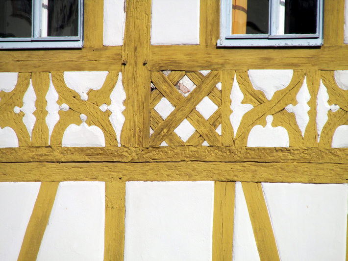 . Het uitgebouwde deel in vakwerk is het Rottmeistershäuschen, vermoedelijk 17e eeuw.