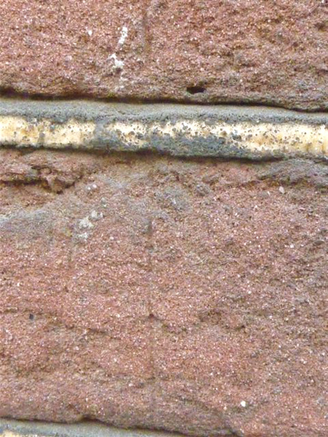 : detail metselwerk voorgevel met krassen als hulplijnen bij het metselen