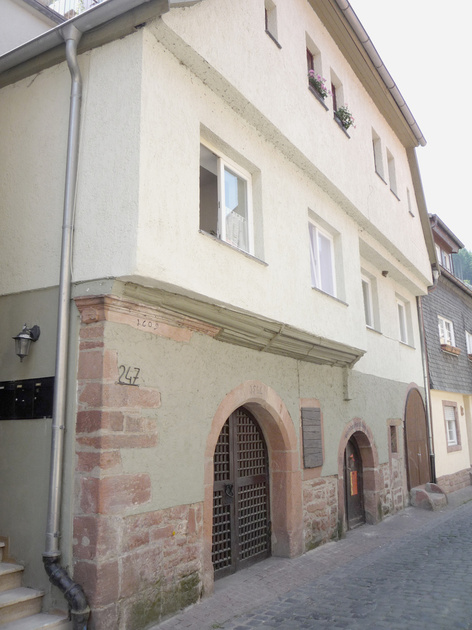 Miltenberg (D) - Hauptstrasse 247, met boven de poort het jaartal 1567 en op de hoeksteen 1609