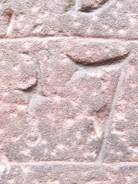, grafsteen met in het midden een moeilijk te ontcijferen getal (jaartal). Hiervan de eerste 2 tekens: een S-vormig scheidingsteken (of een 1) / een 7 (of 1).