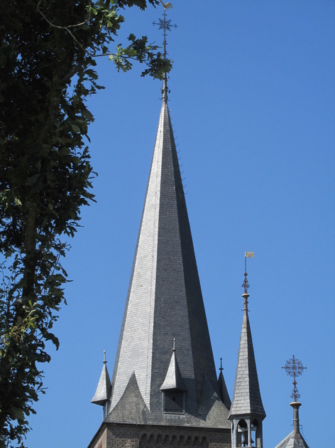 , achtkante torenspits met hoekaankappingen en aan vier zijden een dakkapel met spits