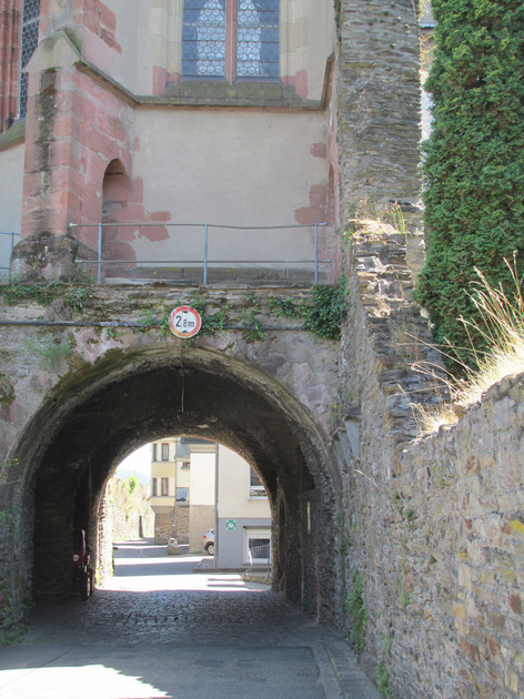 , met onderdoorgang, gezien vanuit het noorden. Links de stadsmuur.