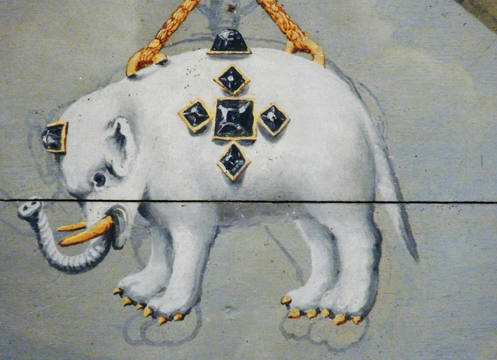 , detail plafondschildering met het wapen van Amerongen: het ordeteken van de Orde van de Olifant