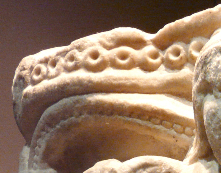 Cambridge (GB) - Trumpington Street - Fitzwilliam Museum (1837-1875).In de collectie: romaans kapiteel (vrouw te paard). Detail: ornament-rand.