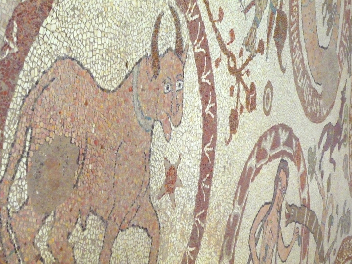 , mozaïekvloer (1163-1165), koor, detail 1e medaillons, detail linker voorstelling