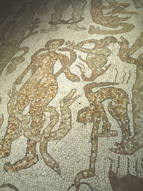 , mozaïekvloer (1163-1165), linker zijbeuk, 4e rij vanuit westen, rechter helft