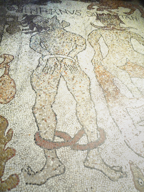 Otranto (I) - Cattedrale, mozaïekvloer (1163-1165), linker zijbeuk, 5e rij vanuit westen, rechter helft: Infernus