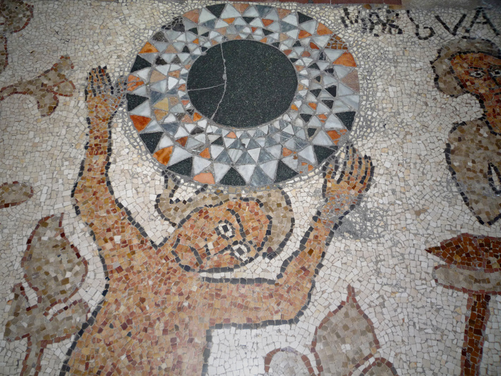 , mozaïekvloer (1163-1165), rechter zijbeuk, oostzijde: figuur boven de levensboom