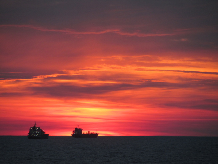 Avondrood: zonsondergang bij Artignano (I). De schepen zijn op weg naar Livorno