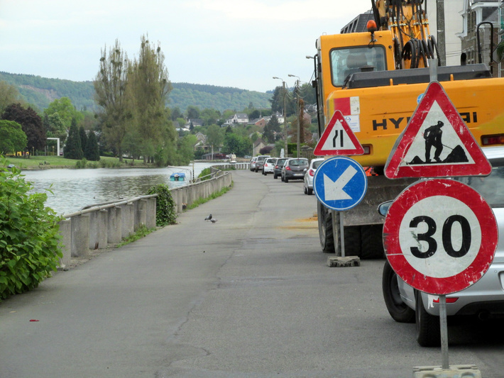 : wegversmalling door werkzaamheden langs de Maas.