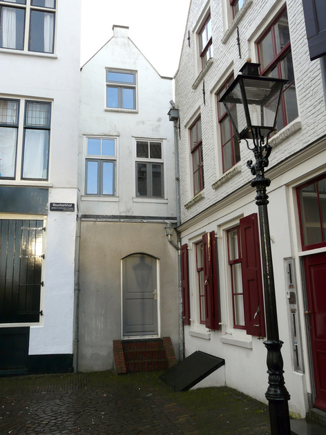 , zuidwand van het plein, met in het midden de terugliggende achtergevel van