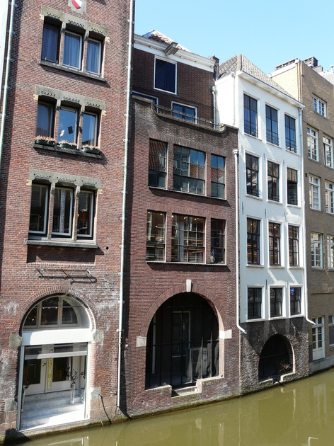 (vervallen adres; NU: 10), achtergevel: het pand in het midden. De overbouwing van de werf is lager die bij dan de buurpanden, waardoor er een balkon is ontstaan.