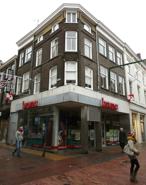 Utrecht - Choorstraat 15 omsloten door twee delen van Choorstraat 13: rechts de gevel van het pand aan de Choorstraat, links die van het daarmee samengetrokken pand aan de Steenweg
