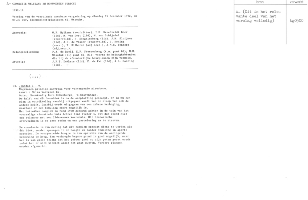 Utrecht - Jansdam 1 e.v. - bouwplan 1992