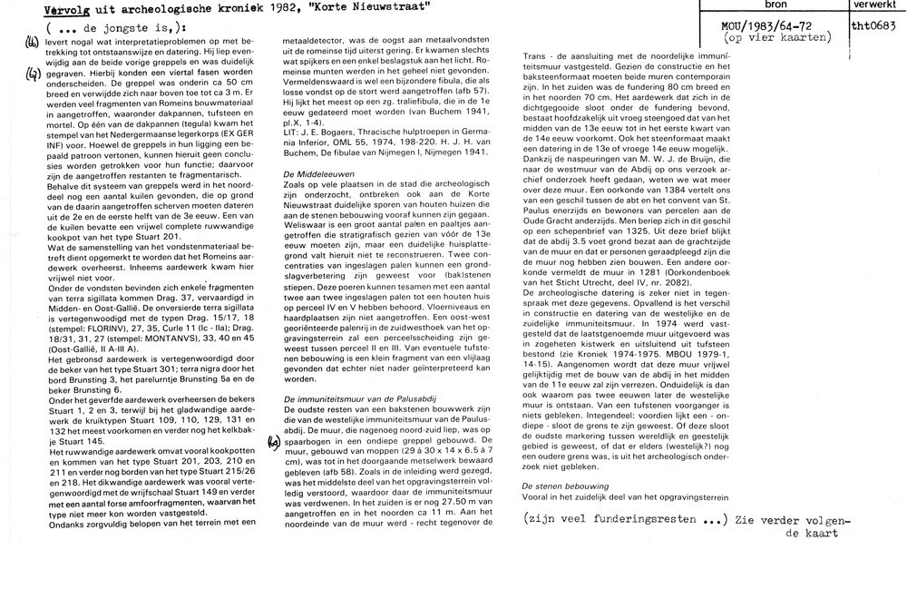 Utrecht - Korte Nieuwstraat 3 e.v. - opgraving 1982