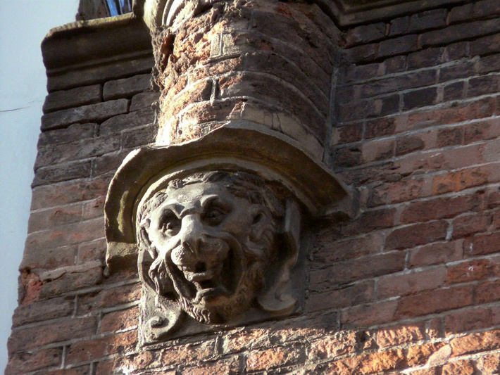 , top van de trapgevel, links, kraagsteen aan de aan de onderste trede