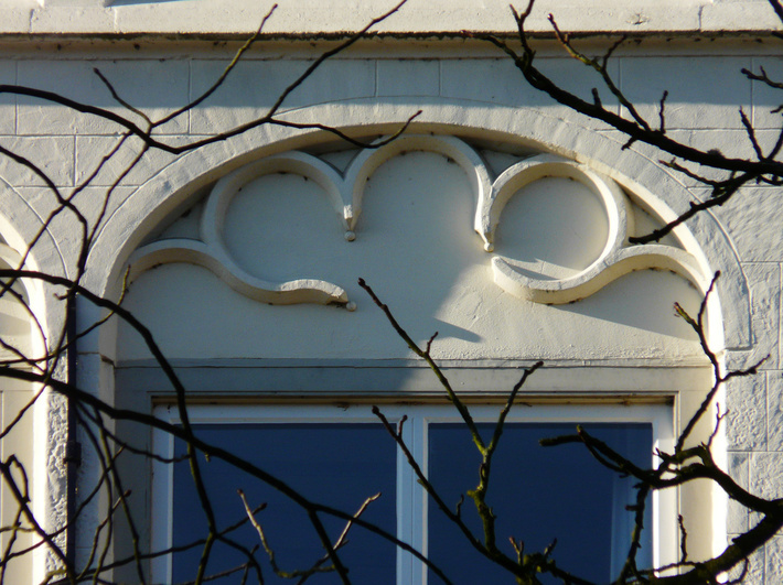, boogveld boven een venster van de 2e verdieping, met eigentijdse blindtracering (1985)